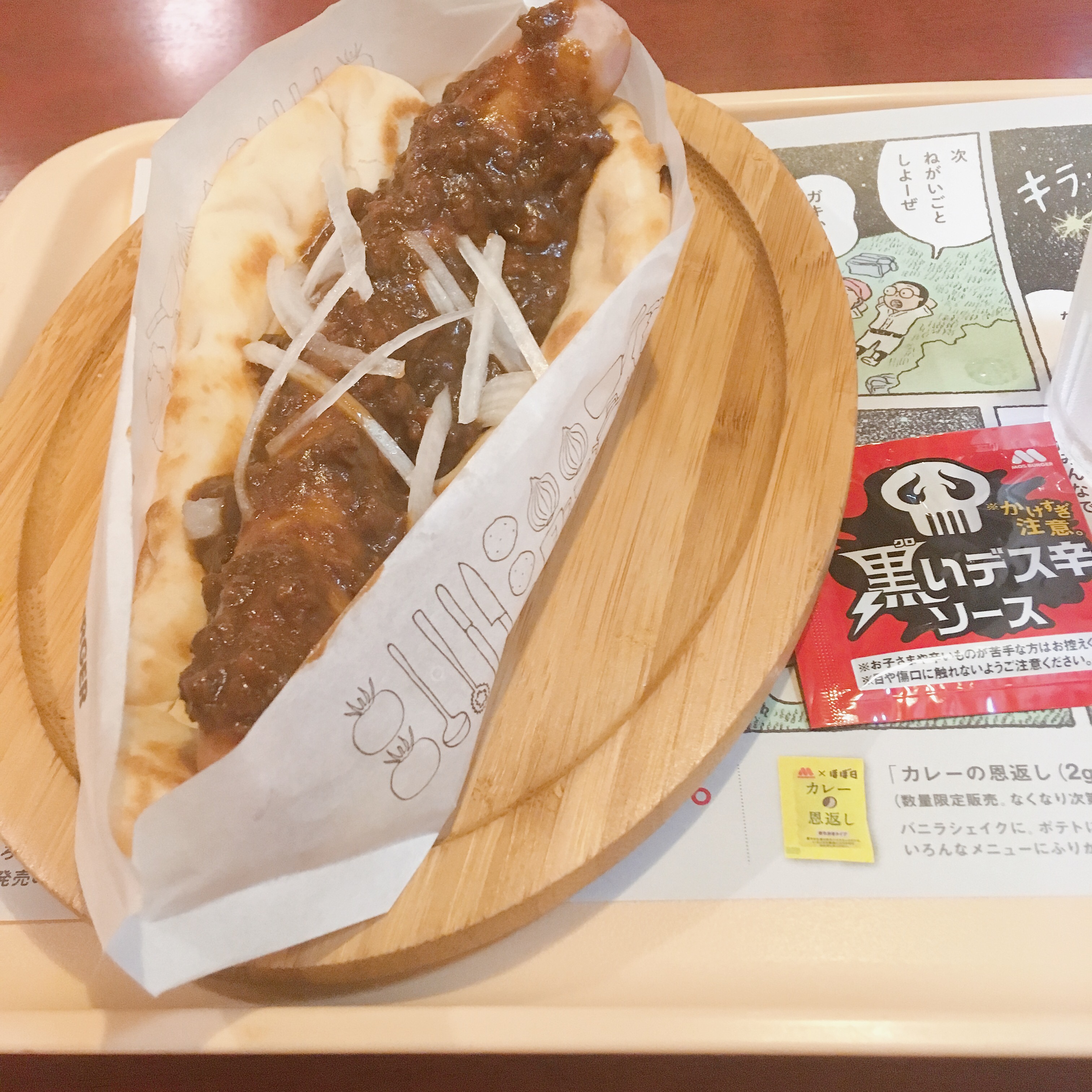 まず、ナンカレードッグはとても美味しいです。モスバーガーのソーセージが実はすごく好きな事もあり、期待を裏切らない味🍛🍛🍛